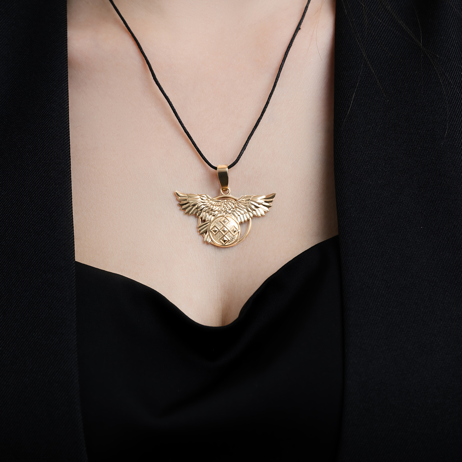 Описание: Подвеска из ювелирной бронзы в виде орла с оберегом «Пять глаз» – это не просто украшение, а мощный символ силы, защиты и духовной поддержки. Оберег, выполненный в форме круга с традиционным сакральным узором, служит древним щитом от злых духов, болезней и негативной энергии, оберегая не только своего владельца, но и его род от сглаза и дурного влияния. Орёл с широко раскинутыми крыльями символизирует свободу, могущество и духовный подъём, помогая носителю чувствовать уверенность, внутреннюю силу и связь с высшими силами. Благодаря тщательно проработанным деталям и массивной форме, подвеска выглядит брутально и внушительно, подчёркивая индивидуальность и характер владельца. Она станет эффектным аксессуаром как для мужчины, так и для женщины, которые ценят украшения с глубоким смыслом и силой. Бронза придаёт изделию особый благородный оттенок и долговечность, а также усиливает ощущение амулета, передающего энергию и защищающего своего хозяина.