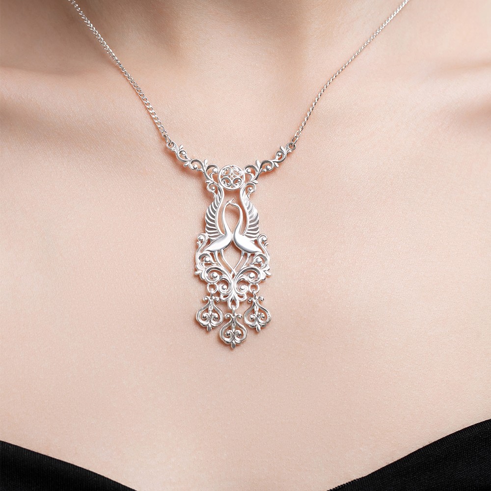 Описание: Серебряное этно-колье со стерхами – это изысканное украшение, пронизанное духом якутской природы и мифологии. Колье со стерхами изготовлено из серебра 925 пробы. Благодаря прочной полновесной цепи и шпрингельской застёжке, колье надёжно фиксируется на шее. Якуты верят, что украшение со священными птицами принесёт своей обладательнице долгую и счастливую жизнь. Серебряное изделие украшено узорами в виде завитков и подвесками в форме лиры, которые передают тесную связь якутского народа с природой. Нежное сияние серебра прекрасно сочетается с растительными орнаментами, придавая изделию особую загадочность. Серебряное колье со стерхами станет лучшим подарком, который будет приносить своей обладательнице счастье и благополучие.