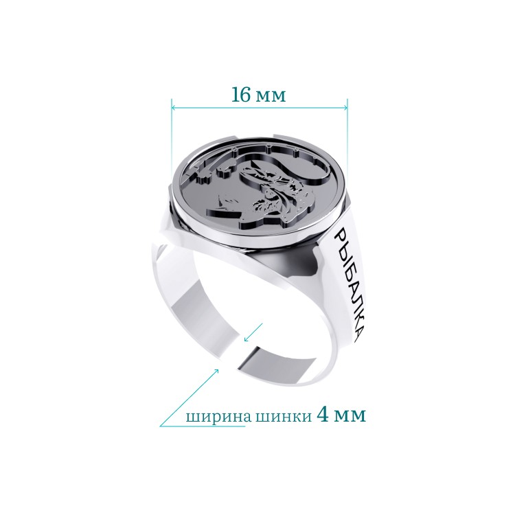 Описание: Серебряное кольцо-печатка изготовлено для самых преданных любителей рыбалки. Кольцо выполнено из качественного серебра 925 пробы, на фронтальной части изображён логотип “Клёвой рыбалки” – рыба и удочка. А с левой и правой стороны выгравирована надпись “Клёвая рыбалка”. Кольцо-печатка из серебра призвано приносить удачу и богатый улов своему обладателю. Такое украшение будет отличным подарком для тех, кто любит рыбалку. Выбрав серебряное кольцо-печатку в качестве подарка своему брату, другу, парню или отцу, вы преподнесёте родостные эмоции на долгое время.