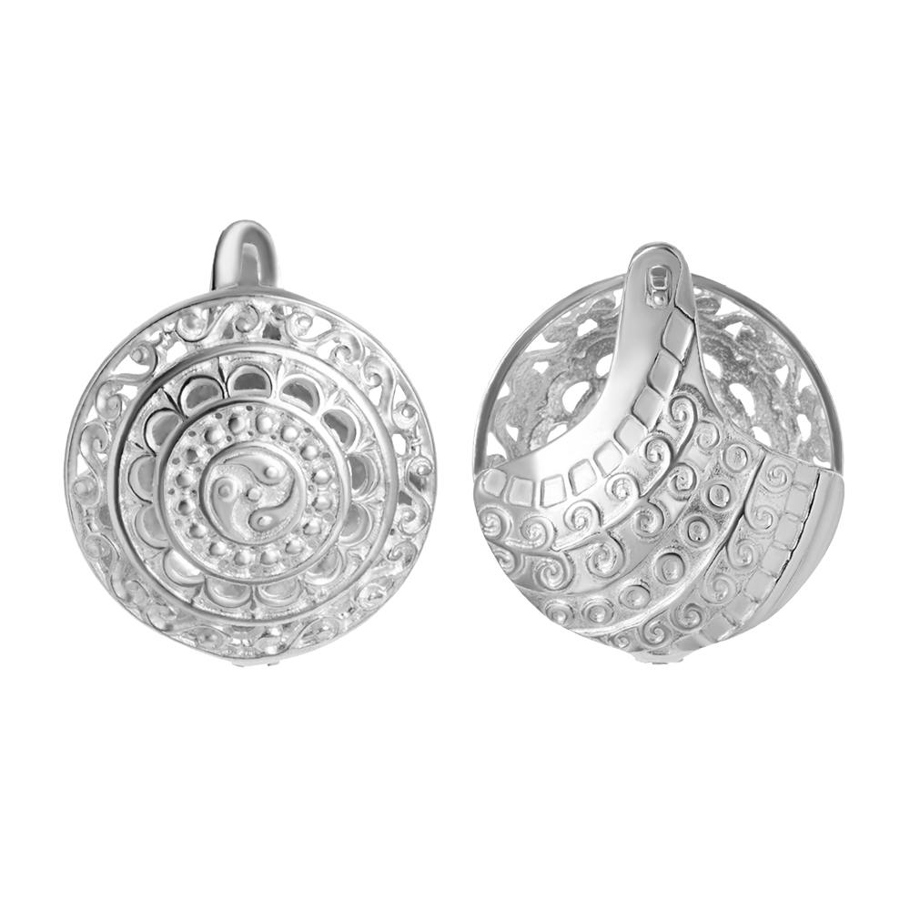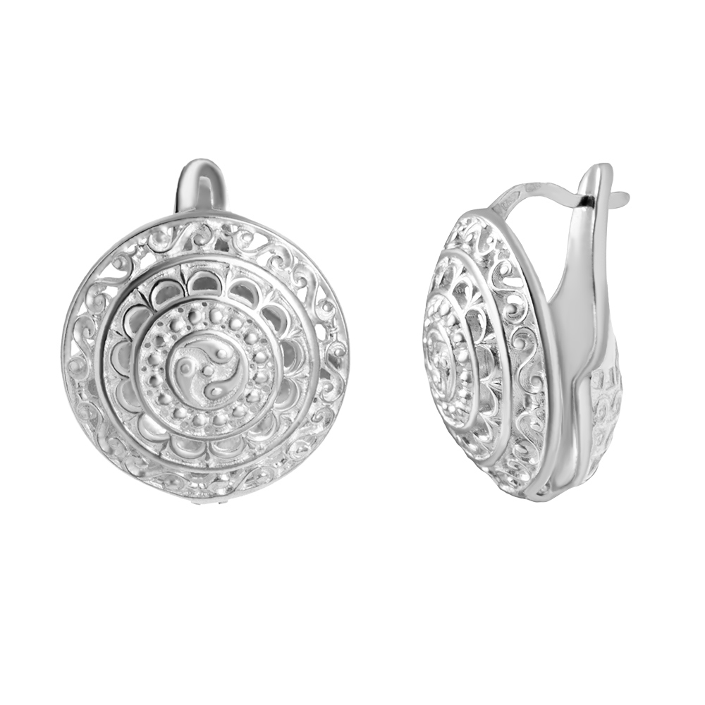 Описание: Объёмные этно-серьги из серебра – это прекрасный вариант для современных и стильных девушек. На серьгах изображён мощный оберег триединства «Үс кут» - символ триединства тела, души и духа. «Ус кут» разделен на три части. Верхняя часть называется «Салгын кут», означает мысли и ум человека. Справа внизу «Ийэ кут», символизирует нравственность и мораль человека. Слева внизу поместился «Буор кут», который трактуется как тело и здоровье человека. Человек на протяжении всей своей жизни должен жить в гармонии с тремя мирами. Серьги выполнены ювелирами УРУУ из высококачественного серебра 925 пробы. Небольшой размер и круглая форма придают им аккуратность и элегантность. А объемные швензы дополняют единый стиль. Благодаря своему необычному дизайну и качественному материалу, эти серьги станут прекрасным дополнением к любому образу, придавая особый шарм и загадочность своей обладательнице.