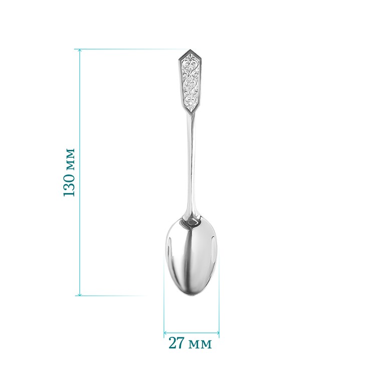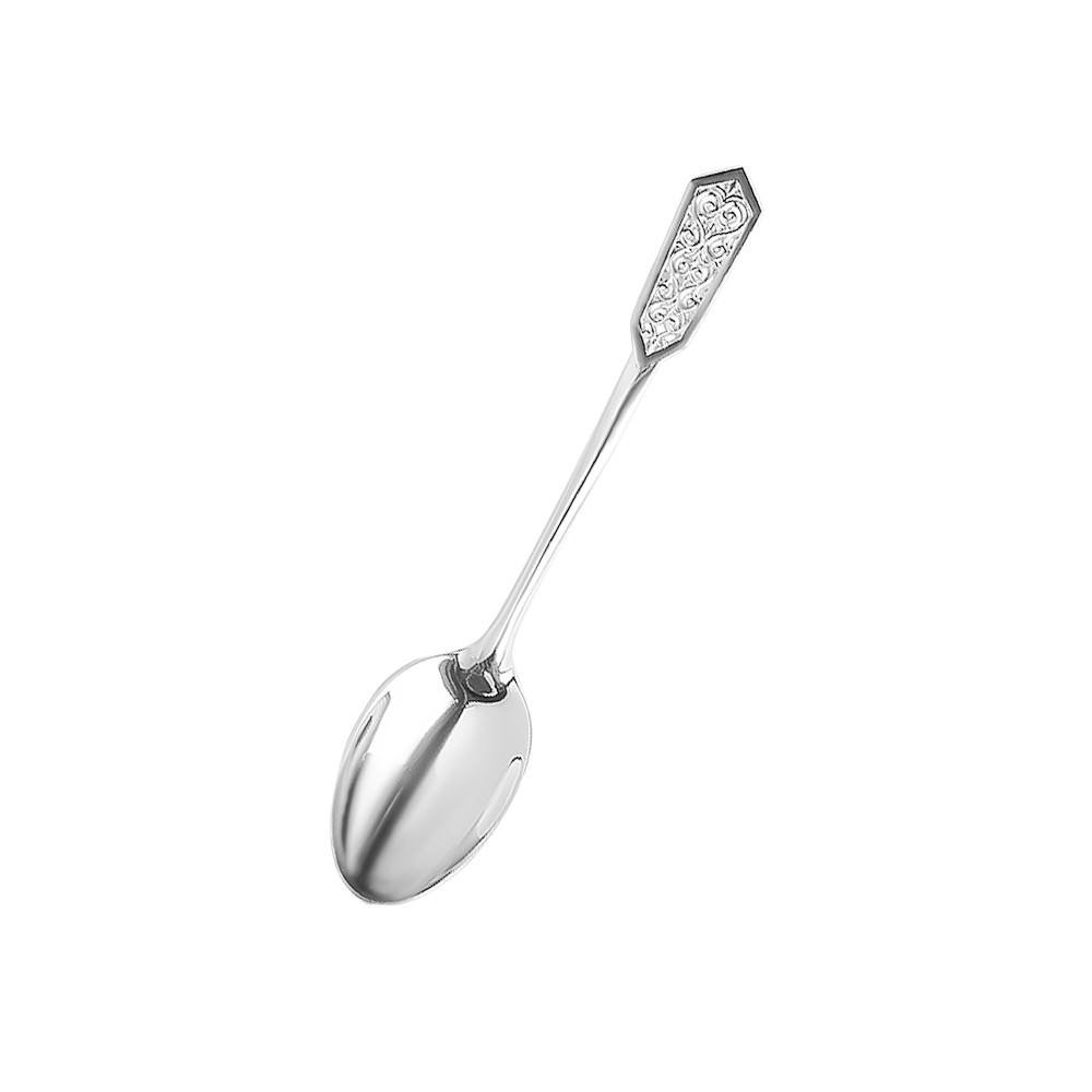 Описание: Ложка из благородного серебра – оригинальный сувенир и ценный знак внимания, который восхищает своим удивительным дизайном. Рукоятка ложки декорирована растительными и сердцеобразными орнаментами, головка с острыми углами. Серебро 925 пробы, из которого изготовлена ложка, ценится не только за свою красоту, но и за полезные качества: оно обладает антимикробными свойствами, что помогает очищать и предотвращать размножение бактерий, способствует улучшению кровообращения и обладает целебными свойствами. Считается, что этот металл способен оберегать от злых духов. Ложка прочная, не мнётся, поверхность гладкая и приятная на ощупь. Изделие из серебра выполнено с любовью и вниманием, что делает её не только функциональным предметом, но и настоящим произведением искусства. Серебряную ложку можно дарить не только на крещение и первый зубик. Её можно преподнести на день рождения ребёнка, пожелав счастья и достатка.