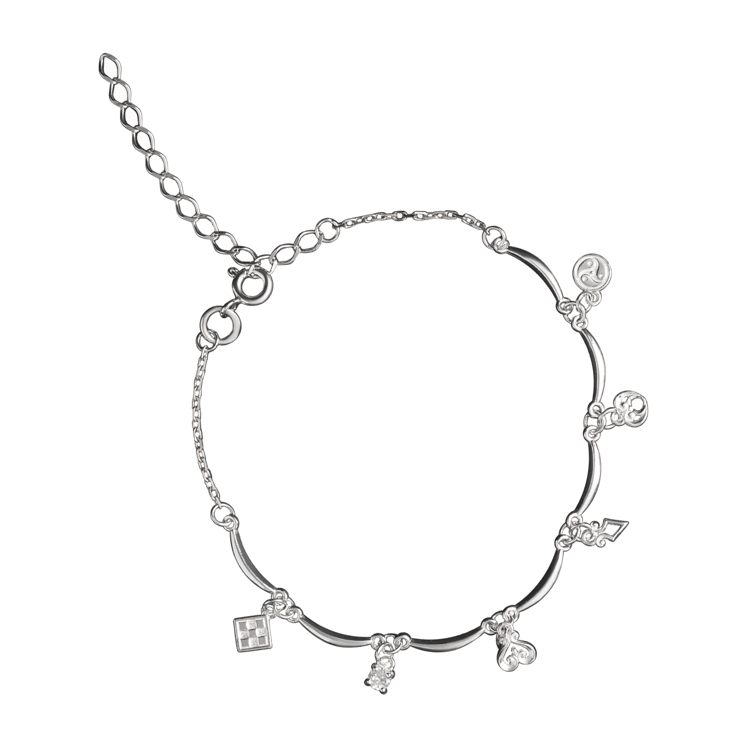 Описание: Изысканный серебряный браслет с подвесками станет одним из любимых украшений. Изготовленный из высококачественного серебра 925 пробы, браслет привлекает внимание своим элегантным дизайном. Изящные подвески, инкрустированные фианитами, излучают нежный блеск, а уникальные якутские орнаменты подчёркивают его неповторимый характер. Оберег «Биэс харах», символ процветания и богатства, оберег «Ножницы» и символ триединства тела души и духа будут вашими надёжными защитниками. Этот серебряный браслет с оберегами – замечательный подарок к Новому году или Дню рождения, который не только украсит, но и придаст сил и уверенности в каждый день.