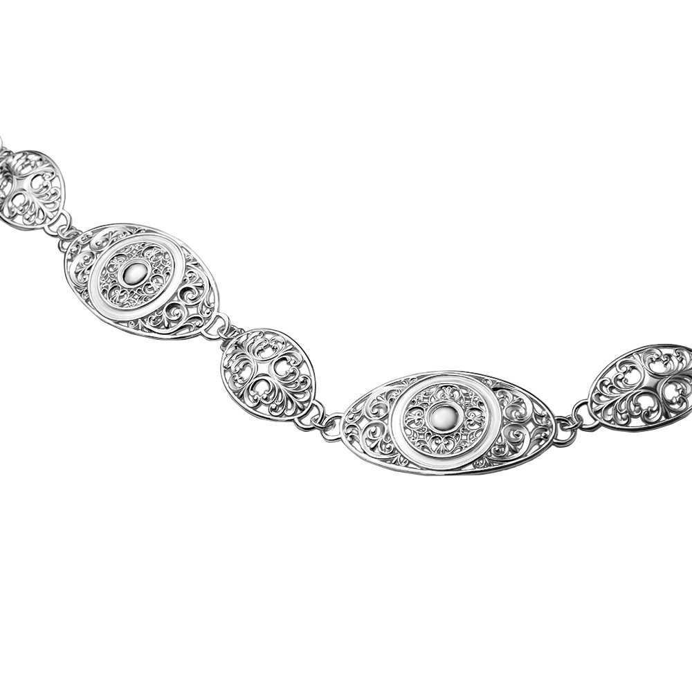 Описание: Женский серебряный ремень – элегантный аксессуар, который преобразит любой образ. Ремень изготовлен из высококачественного серебра 925 пробы, украшен круглыми декоративными элементами и изысканными растительными орнаментами. Это роскошный аксессуар, который подчеркнёт прекрасный силуэт женской фигуры, акцентируя внимание на талии. Блестящее серебро добавляет яркости и свежести образу. Когда ремень обвивает талию, он излучает свет, создавая игру отражений, которая захватывает взгляд. Это изделие станет непревзойденным акцентом как для повседневного, так и для вечернего наряда, превращая даже самое простое платье в нечто выдающееся. Растительные орнаменты дарят ремню романтичный и утонченный вид, делая его красивым дополнением к любому гардеробу.