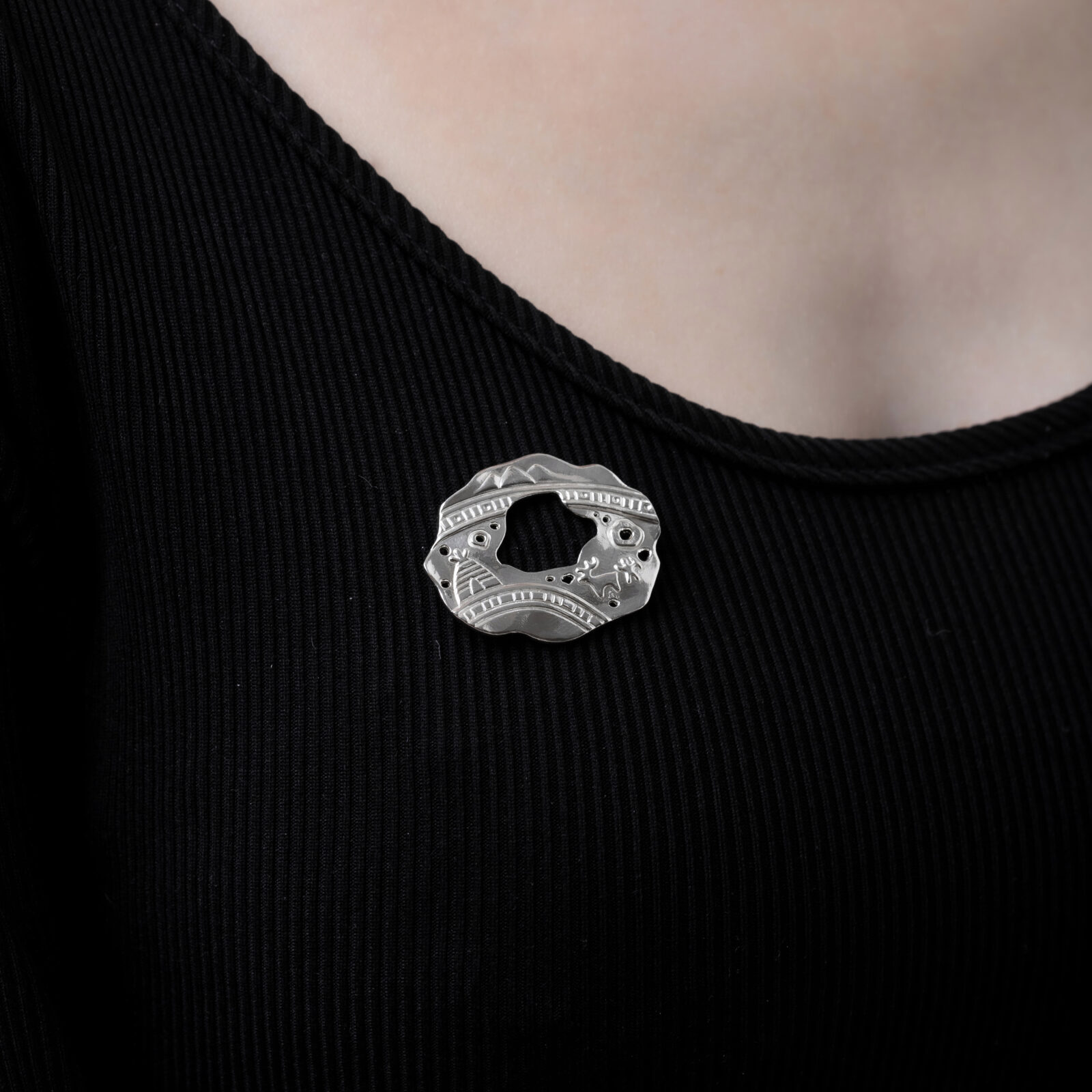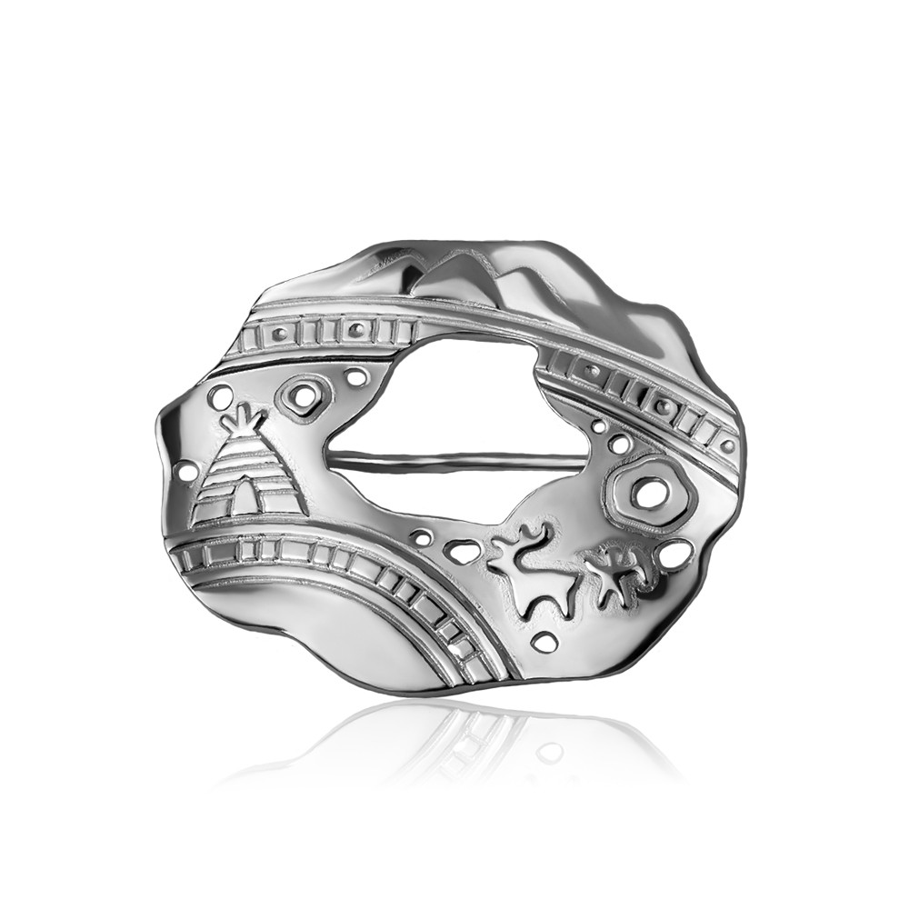 Описание: Трендовая серебряная брошь неправильной формы выполнена в этническом стиле. Благодаря своему уникальному дизайну, она гармонично впишется в любой гардероб. Брошь без вставок, выполнена из высококачественного серебра 925 пробы. Оригинальный дизайн украшения не останется без внимания: на броши выгравированы древние орнаменты, которые символизируют культуру древнего якутского народа. Серебряную брошь можно прикрепить на лацкане пиджака или пальто. Им можно украсить трикотажный пуловер или вязаный свитер. Брошь с этническим дизайном преобразит даже самый простой наряд, добавив ему изюминку и шарм.