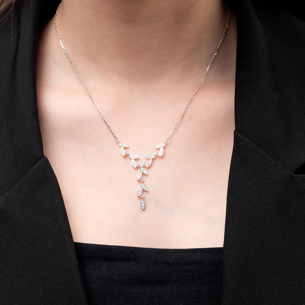 Описание: Серебряное колье, выполненное в форме изящных веток, олицетворяет красоту якутской природы. Каждая деталь этого украшения пронизана атмосферой лёгкости и свободы, а искрящиеся фианиты, рассыпанные по ним, придают ему нежное сияние. Элегантная композиция отражает гармонию и изящество, благодаря чему колье становится не только украшением, но и истинным произведением искусства. Его блеск и стильный дизайн идеально подчеркнут вашу шею, добавляя шарм и изысканность как к повседневному, так и к вечернему наряду. Это колье – символ женственности, который будет радовать глаз и вызывать восхищение окружающих, словно цветущий сад, искрящийся под солнечными лучами.