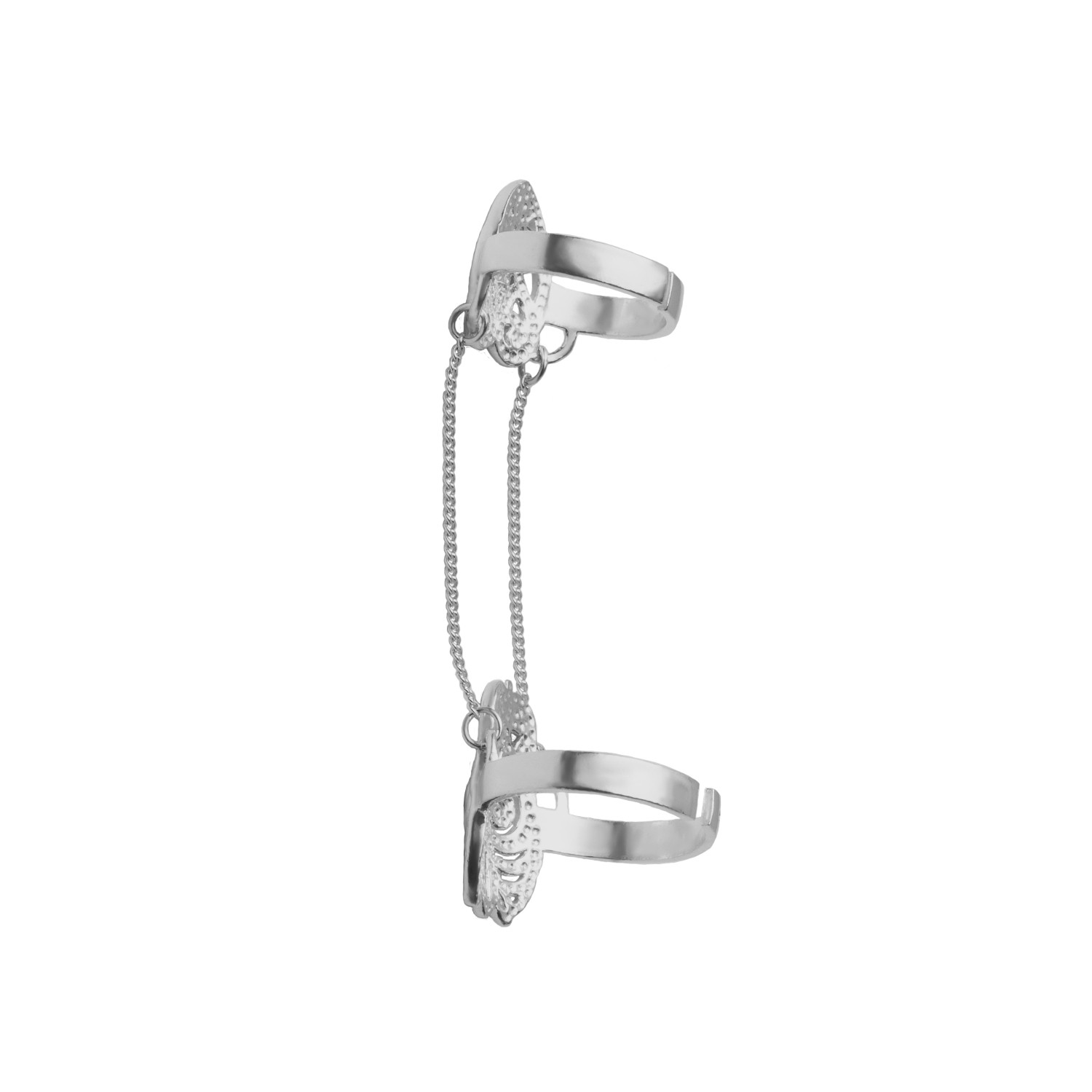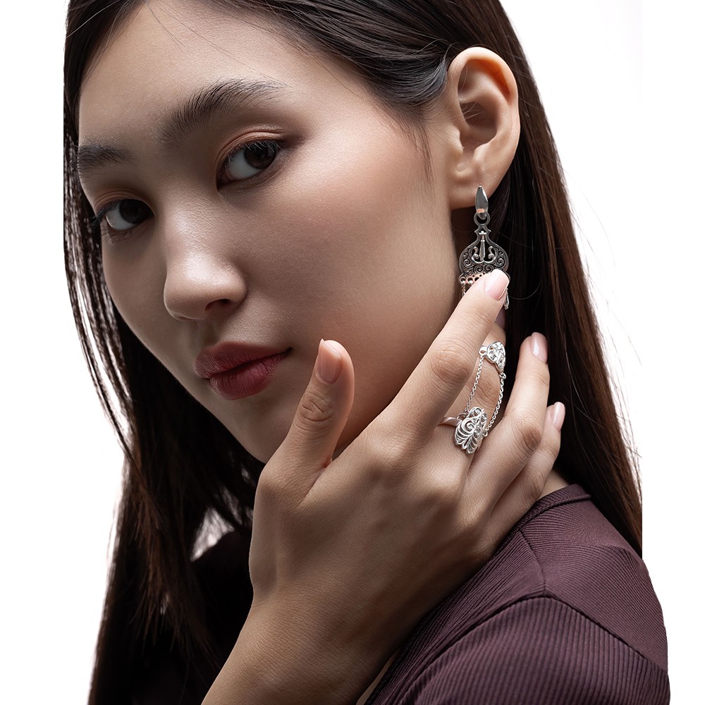 Описание: Серебряное этно-кольцо на две фаланги – это стильное украшение для истинных ценителей ювелирного искусства. Фаланговое кольцо полностью пропитано духом якутской культуры и мифологии, что делает его особенно привлекательным для ценителей этнических украшений. Тонкая цепь, которая соединяет два кольца, нежно гармонирует с дизайном изделия. Кольцо безразмерное, благодаря чему вы с лёгкостью можете отрегулировать его под свой размер. Серебряное изделие в этно-стиле станет прекрасным подарком для стильной девушки, подарит восторг и восхищение. Подарив фаланговое кольцо УРУУ, вы сделаете исключительный сюрприз вашему близкому человеку.
