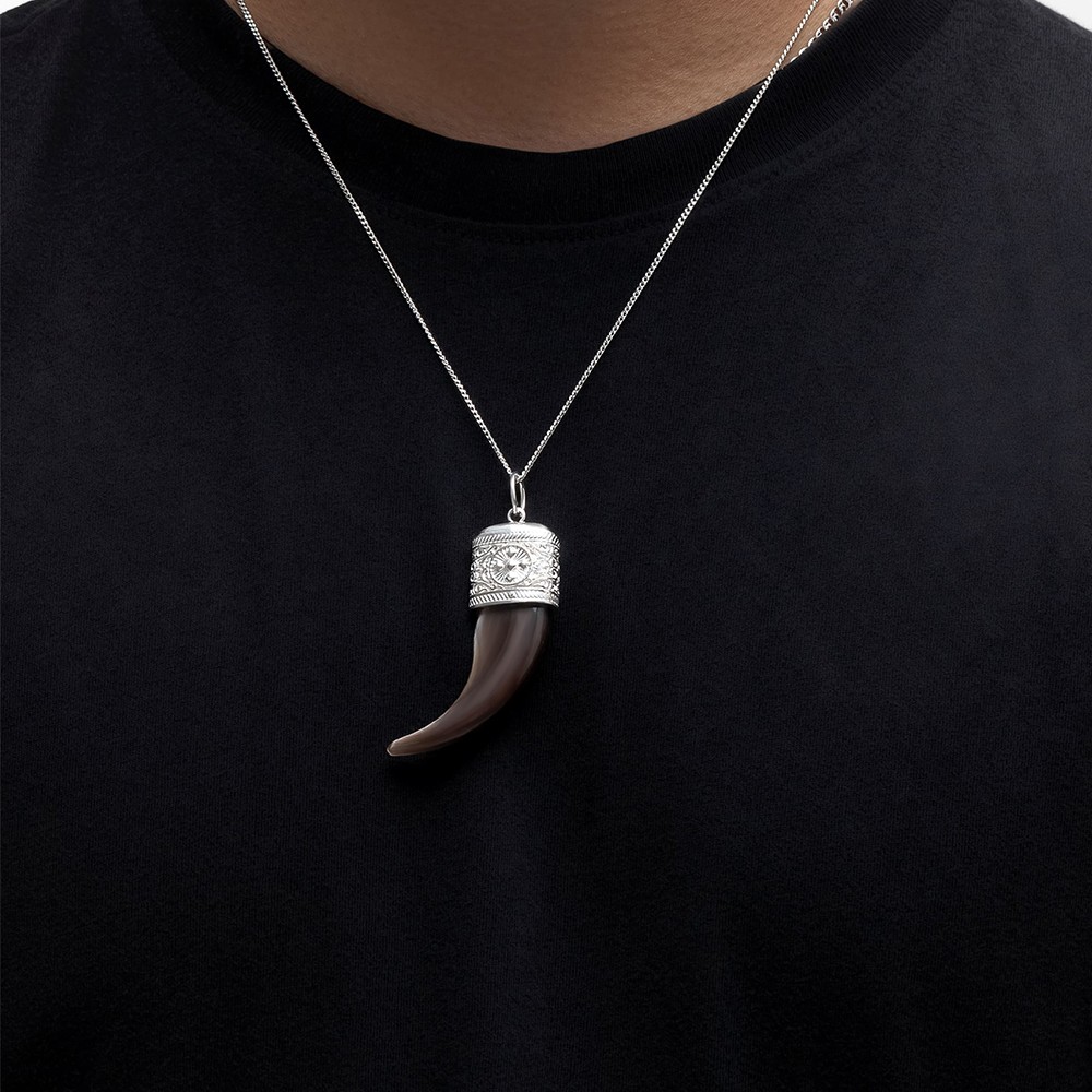 Описание: Серебряная подвеска с настоящим медвежьим когтем – это стильный и уникальный аксессуар, который подойдёт для сильных и смелых мужчин. Основа изделия выполнена из серебра 925 пробы, декорирована якутскими орнаментами, в центре изображён символ медвежьей лапы. Подвеска-оберег с медвежьим когтем считается одним из самых могущественных оберегов для мужчин. Медведь – это символ власти, отваги, могущества, который призван передать эти качества своему владельцу. Украшение станет отличным подарком мужчине любого возраста – сыну, брату, мужу, отцу или другу. Подвеска-оберег добавит образу брутальности и станет стильным дополнением к нему. Ювелирное изделие УРУУ изготовлено из высококачественных материалов, что гарантирует их долговечность и сохранение первозданного вида на протяжении многих лет.