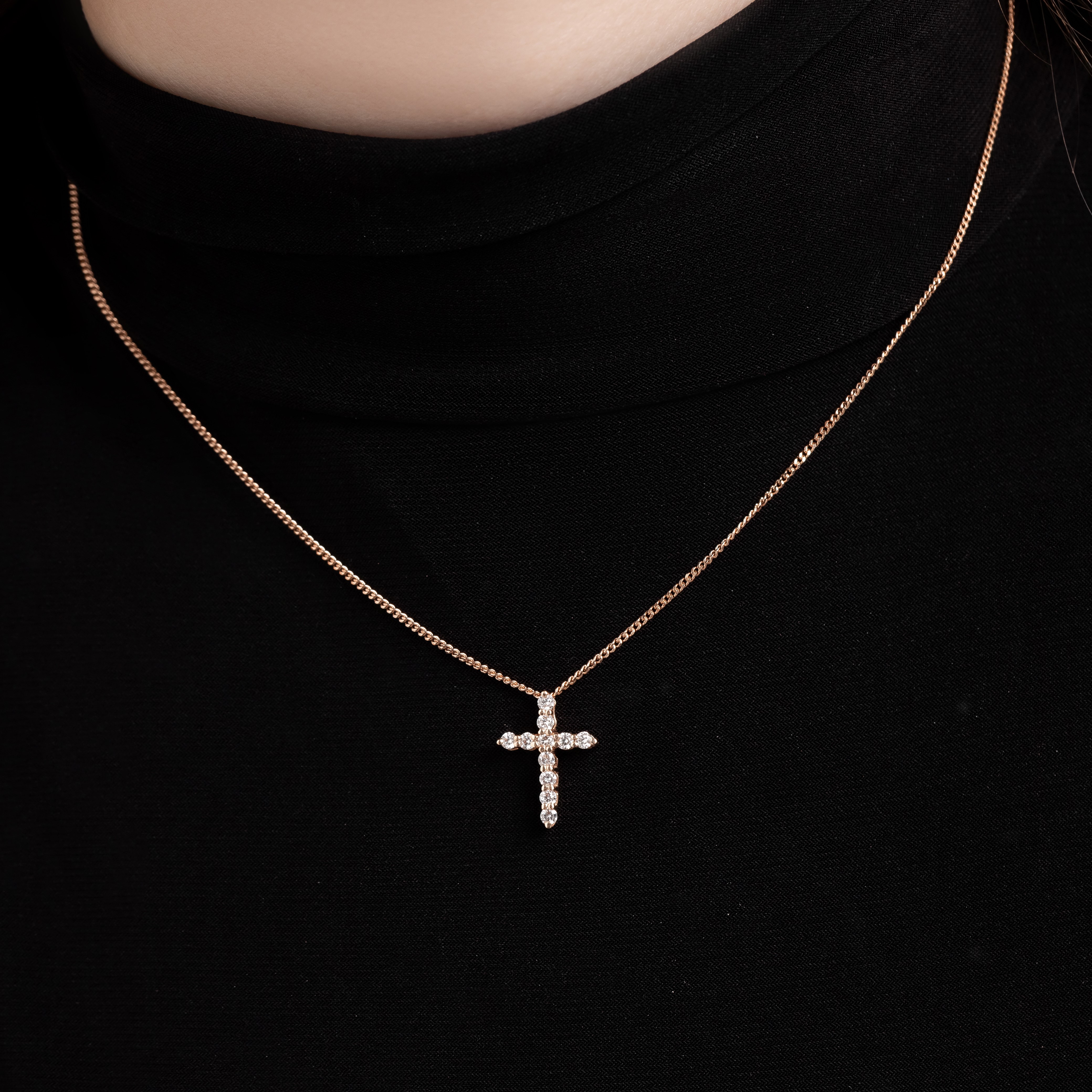 Описание: Великолепная подвеска в виде креста выполнена из золота 585 пробы, инкрустирована 11 природными якутскими бриллиантами. Каждая грань драгоценных камней мягко переливается при любом движении, и создаёт слепящее сияние, которое привлекает взгляды и придаёт образу особый шарм. Символ креста олицетворяет верность, защиту и духовную силу. Он является напоминанием о любви, надежде и божественном покровительстве. Золотая подвеска в виде креста с бриллиантами – это не только украшение, но и амулет, который будет защищать и оберегать своего владельца.