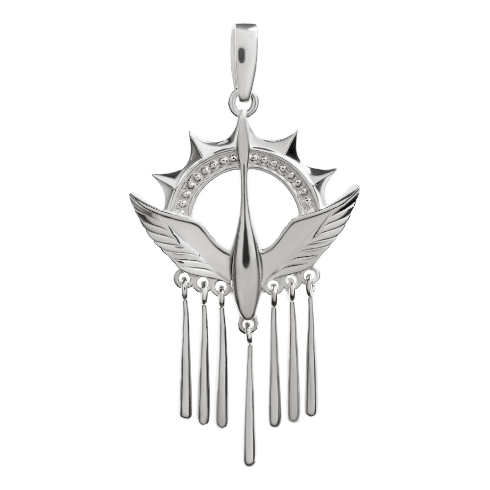 Описание: Серебряная подвеска вдохновлена этническими мотивами, что придает изделию оригинальность и шарм. Центральным элементом украшения является священная птица Стерх, обрамлённый солнечным ореолом. Подвески с тонкими висюльками добавляют динамичности и утончённости, создавая эффект плавного движения. Изысканная серебряная подвеска станет прекрасным выбором для подарка на Новый год, свадьбу или день рождение. В комплекте к ним можно подобрать серьги арт. 092303с. Вместе или по отдельности они прекрасно дополнят ваш повседневный или вечерний образ. Для вашего удобства красивая упаковка идёт в подарок.