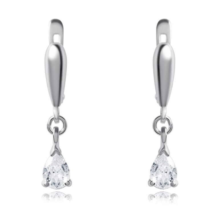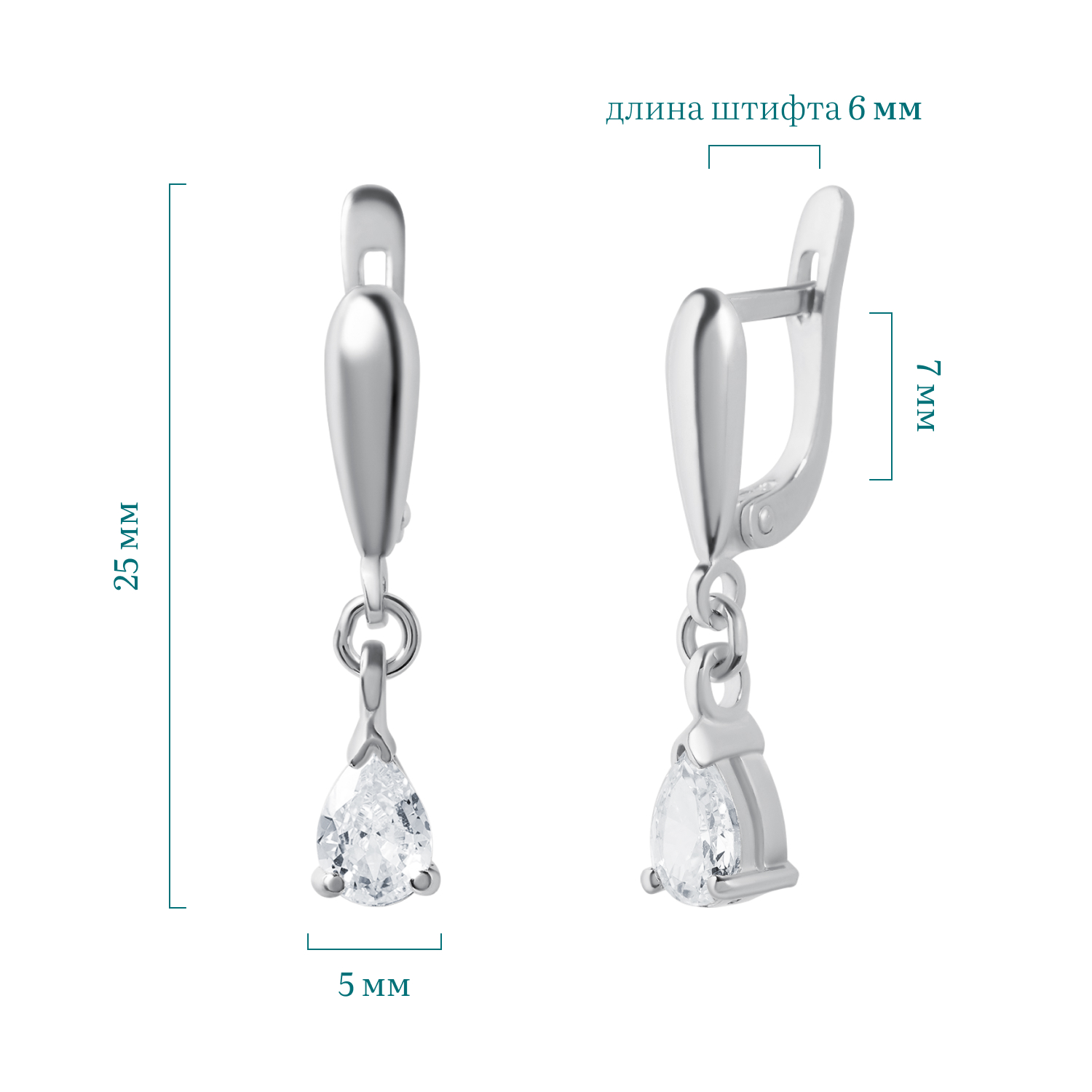 Описание: Милые и изящные серебряные серьги с фианитом подойдут любой девушке. Серьги изготовлены из серебра 925 пробы, способ застёжки – английский замок, который обеспечивает надёжную фиксацию на мочке ухе. Фианит каплевидной огранки подчеркивает чистоту и блеск серебра, замечательно ловит свет и создает эффект мерцания. Серебряные серьги с фианитом – лучшее решение, чтобы сверкать на празднике. Украшение подойдёт не только с вечерним нарядом, но и добавит элегантности повседневному образу. Для вашего удобства, в комплекте с серьгами, вы получите красивую упаковку в бирюзовом цвете.